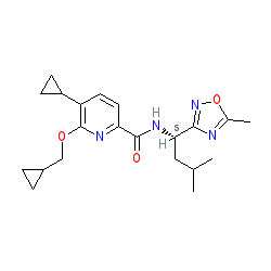 | SMILES | NC(=O)[C@@H]1CS(=O)(=O)CN1C(=O)c1ccc(C2CC2)c(OCC2CC2)n1 |